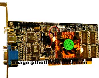 华硕这款MX400显卡,代号是V7100 Pro,刚刚在CeBIT展出。华硕这款MX400的型号上加了个“Pro”,以区别于华硕先前的V7100,这款V7100 Pro具有更高的频率,它的核心频率是200MHz,样品使用了5ns的32MB EliteMT SDRMA显存。从照片上可以发现,华硕V7100 PRO支持TV-OUT。