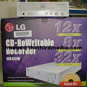 今天我又在市场上发现了第二款使用8MB缓存的刻录机:LG CED——8120B,不过这款机型可不是8432了,这是LG新推出的产品,在现在的市场上属于高速型的刻录机产品,是12X8X32的机型,这款刻录机是昨天才到的货。