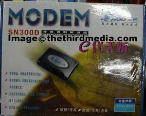 | 今天笔者正在市场里转悠,突然一家卖MODEM的柜台打出的广告吸引了我,上面写着:三诺超级MODEM“e-代天骄”现已到货,外置CL双芯片仅售340元。 哦,三诺,不是做音箱的厂商吗,怎么也开始趟起MODEM这片混水来了...立刻去看货,没想到,这款MODEM是塑封的,所以其庐山真面目具体是什么样,笔者也没能见到,不过商家说里面的东西和包装上面的图片一模一样,(见图)没办法,只好听听这款MODEM的具体性能指标了。 商家介绍说这款MODEM是外置的(废话),采用的是CL的双芯片结构,这可以在一定程度上提高MODEM在连接时的稳定性,具体的情况大家可以参考一款X达的同样芯片的产品,其稳定程度在网友中间是有口皆碑的。另外商家还介绍说这款MODEM可以支持V.92标准,其实现在V.92还不被众多ISP所支持,所以现阶段说支持V.92标准的不过是厂商招徕顾客的一种手段罢了。